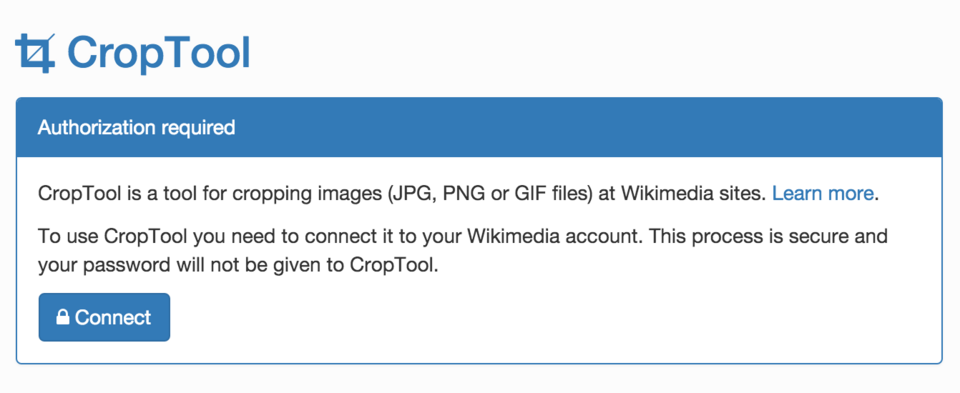 | 2. To use CropTool, you need to authorize it to use your Wikimedia Commons account using OAuth. |