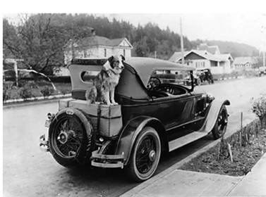 Bobbie was a Scottish Collie born in 1921 in Silverton, Oregon. He was adopted by Frank and Elizabeth Brazier and their two daughters, Leona and Nova. Bobbie loved his family and spent hours chasing after the girls on the lawn. Leona and Nova would squeal in delight as Bobbie raced around them, herding them in circles like any good Collie or Shephard dog. Bobbie was very smart and knew how to find his way across town and back home after family outings. And his favorite pastime was riding in their Ford Model T car! The car was small and cramped, but he didn’t mind. He loved climbing over their laps and sticking his head out the side of the car. There were no windows – just a folding top and a front windshield – so a wonderful breeze would blow in their faces as they rode around town. The girls would laugh and put their arms out of the car, pretending they were birds flying in the breeze. Bobbie would pant and wag his tail furiously, jutting his nose into the air to capture all the glorious scents: newly-mown grass, blooming flowers, and cooking food.